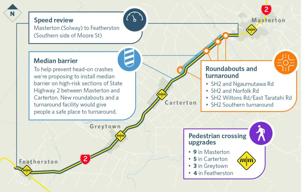• People can provide their feedback by visiting nzta.govt.nz/projects/sh2-wairarapa-highway-improvements or emailing SH2Wairarapa@nzta.govt.nz