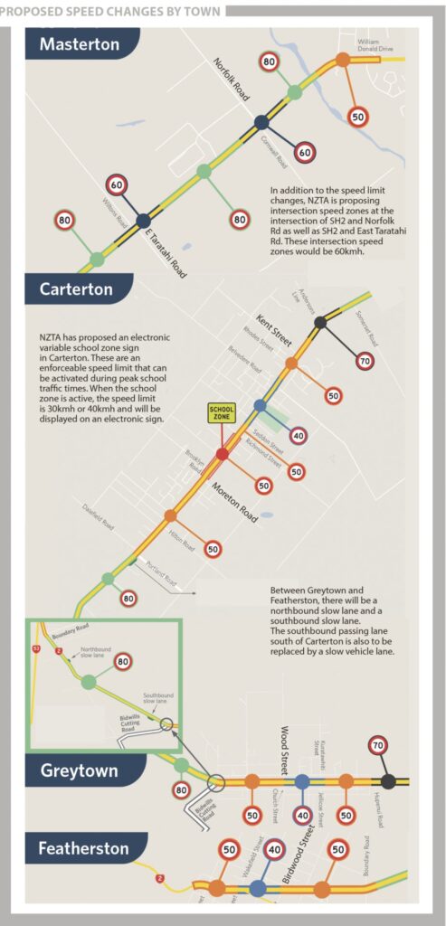 Speed limits between Featherston and Masterton will be dropped to 80kmh if a proposal from the New Zealand Transport Agency goes ahead.