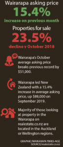 Average asking prices for houses in Wairarapa increased 15.4 per cent in October, to $571,621 – the highest increase recorded in the country, compared with the previous month.