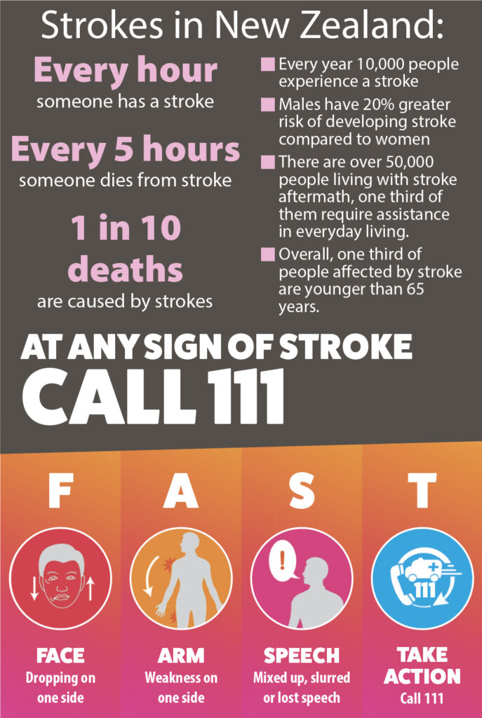 Strokes are the third leading cause of death in New Zealand. Every hour someone has a stroke, and there are 50,000 people living with stroke aftermath – a third of them requiring help in everyday living.