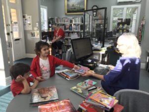 Librarian Liz Stevens issuing Guadalepe Portales her first library book in seven weeks. PHOTO/KAREN COLTMAN