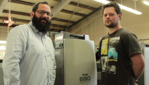 From left: Printcraft managing director Peter Watson with employee Karl Pearson; Webstar’s Todd Nicholls with operations manager Trevor Howard. PHOTOS/TOM TAYLOR