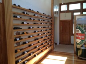 A derelict wall in the old hospital pictured in 2014 is now a vast wine rack (below).