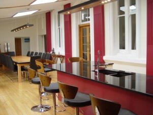 What used to be a sun porch in the old Greytown Hospital is now a large, modern kitchen and dining area (below).