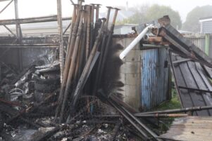 The shed’s owner, who did not wish to be named, was visibly upset by the damage to his property.