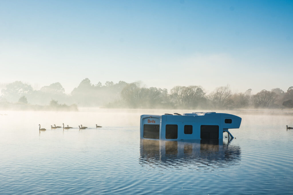 The mother got out of the campervan to stretch her legs, and the father was about to do the same when the van, still in gear, lurched forward into the lake.