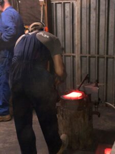 Quintin Fawcett forging an axe.