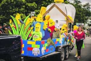 The Lego float heads down the street at the 2020 Masterton Christmas Parade.