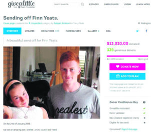 People wishing to donate to the cause can do so by searching ‘Finn Yeats’ at www.givealittle.co.nz with funds going towards funeral costs, support for Tracy, and the home.