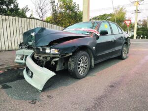 Early on Wednesday morning, a vehicle crashed into a power pole on Kent St in Carterton. PHOTO/SUE TEODORO