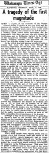 On the morning of the disaster, the initial report in the Times-Age stated the Wahine was drifting slowly down Wellington Harbour with both anchors out but was “in no immediate danger”.