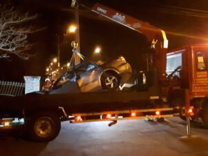 A bystander who did not want to be named said they heard a very loud bang and saw the crashed car.