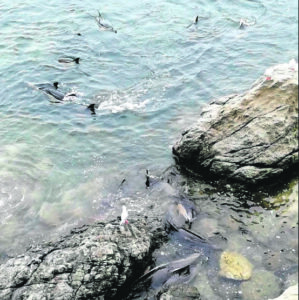 “It was literally dozens. Some were bleeding as they hit the sharp rocks.