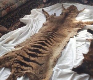 About a year ago a visiting group of students from Victoria University and a Te Papa curator of vertebrates Alan Tennyson recognised it as the distinctly striped skin of a Thylacine, better known as the Tasmanian tiger and long thought extinct.