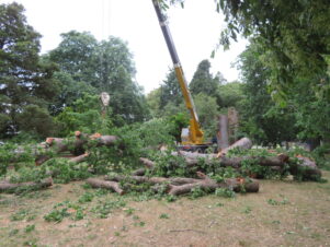 Saywell skilfully manoeuvred the crane to pull each limb away and land it to the ground without damaging other trees.