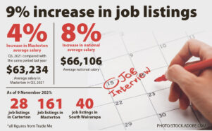 According to Trade Me figures, in the September quarter, the average salary in Masterton reached $63,234, an increase of 4 per cent compared with the same period last year.