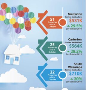 Carterton, while not achieving a record price, had a higher median sale price than Masterton, at $564,000, with 25 houses sold in October.