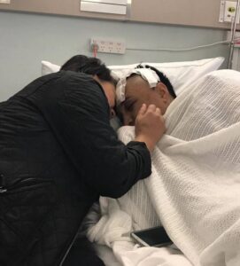 While he can’t work or care for himself, Mr Huhu hopes his mum, nana and papa can fly over and help him during his recovery.