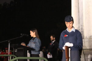 Hundreds gathered around the Masterton cenotaph, with Masterton RSA president Trevor Thompson remarking that people were close to spilling out the gate.