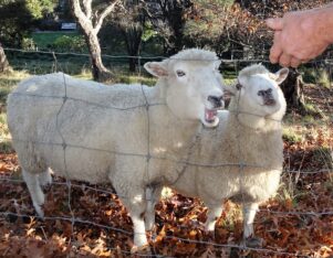 When Busby’s twin died a while back another companion sheep was brought in. Lynley Bird said Busby grieved a lot when that one died too, but the introduction last year of a new friend, called No Name, had perked him up.