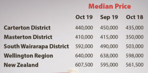 The number of South Wairarapa properties sold in October was 17, only one above September’s 16 properties, and well below the 28 properties sold in October 2018.