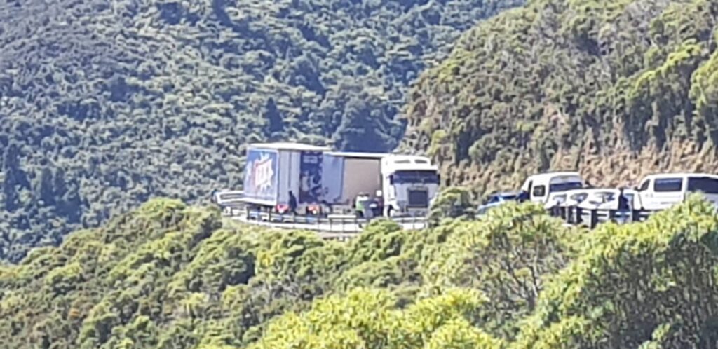 State Highway One is also closed until further notice following an early morning truck crash near Pukerua Bay on the Kapiti Coast.