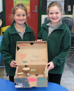 Pupils Lily and Addie reconstructed the taniwha’s cave – complete with carpeting, wall hangings, and stairs.