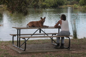 A dog owner at Henley Lake on Monday said he had heard a warning about the toxic algae on the radio and was keeping his dog on a short leash to avoid it coming into contact with the water.