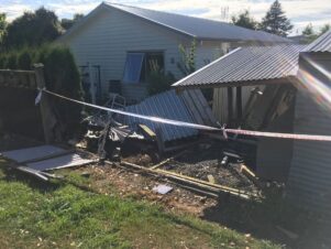 The male neighbour’s shed was destroyed by the impact and his ladder and trailer damaged.