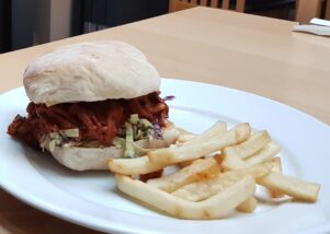 Greytown Hotel’s burger, called ‘The Local’, is a Southern Louisiana-style smoked brisket burger with jalapeno slaw, gouda, and house-made spicy BBQ sauce in a Greytown French Baker bun, also served with fries.