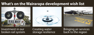 investment in improving the rail service; exploring options for future water storage; and bringing back an airline service to Masterton.