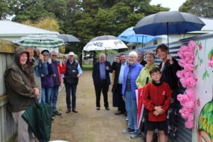 The sign reveal was attended by 15 people, including the artist responsible – Katie Gracie, as well as members of the Solway Neighbourhood Planning Group, Masterton District councillors, and Mayor Lyn Patterson.
