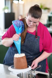 The 28-year-old, who became the show’s first ‘Star Baker’, is building a reputation to be a bit of a ‘whisk-taker’ with her baking and made a stunning ice cream cake in the form of Castlepoint that drew immediate praise from the judges for its flavours and presentation.