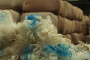 The blue markings meant the wool couldn’t be dyed later and so had to be scrapped.