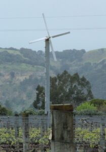 The vineyard runs diesel powered frost fans to draw down the warmer air in the inversion layer and blow it through the vines.