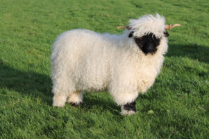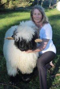She fell in love with the Valais sheep’s distinctive look – shaggy coarse wool, with a black face and black feet and curly horns.