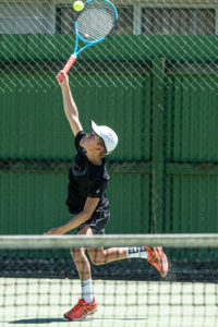 Masterton number one Boon Huxtable retained his unbeaten run in interclub singles with a straight sets win over Carterton’s Jono Hurley. PHOTOS/JADE CVETKOV