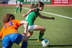 Wairarapa striker Sam Whyte had just the goalkeeper to beat and had played the ball past her only to be taken out late by the goalkeeper on the edge of the box, in what could easily have been a penalty and a red card.