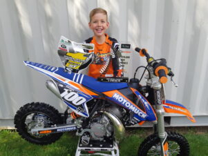 Teddy Shaw won the 9-11 years’ 65cc class at the New Zealand Mini Motocross Championships. PHOTO/ANDY MCGECHAN — BIKESPORTNZ.COM