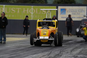 Porirua’s Jordan Robertson fronted with his new top alcohol rail dragster, and Roger Binnema from Balclutha had his first outing in his new 2018 Chevrolet Camaro which was custom built in the United States.